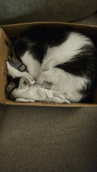 Mittens is 13 years old and still acts like a kitten! She likes wrestling with her 3yo brother Miles and gets the zoomies.