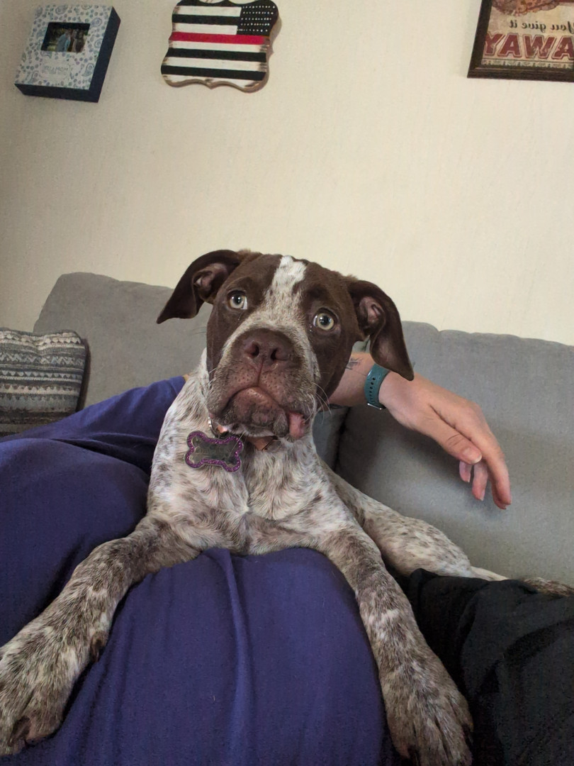 Mocha brings so much joy to any situation. She is always so excited to see another person or dog. I was so incredibly unsure if I even wanted to get another dog as we already had two, but she filled that void we didn't know we even had. She is always so loving and ready to cuddle.