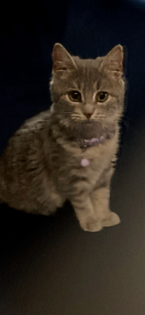 This is mocha. She is from the humane society and is 3 months old. She’s a playful kitty that loves people.