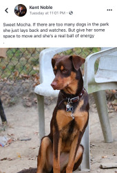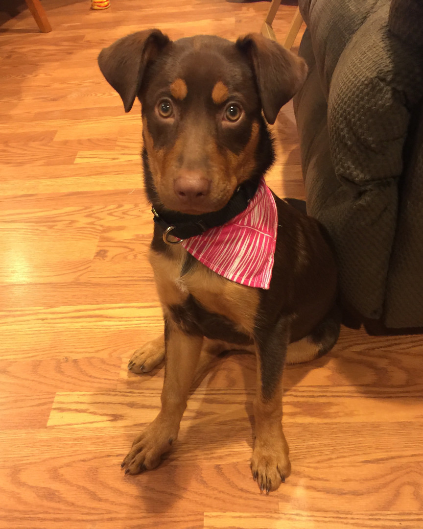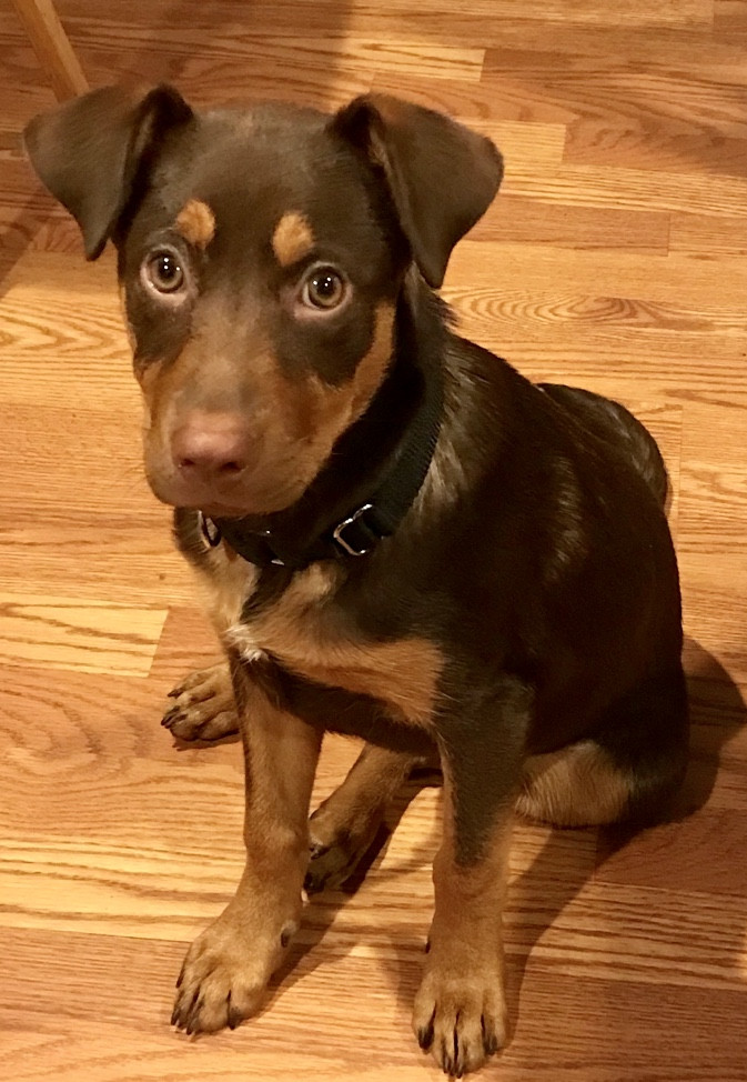 Adorable lab/doberman mix. Very protective for and loyal dog. Loves to go for walks. S