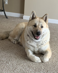 Mochi, my 120 lb, people loving, dog hating, Akita