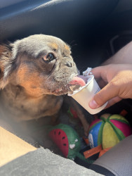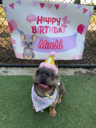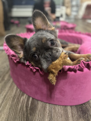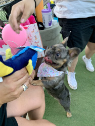 Mochi is a one year old frenchie. She is small but full of personality! She is sweet, sassy, and always making people smile!