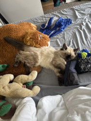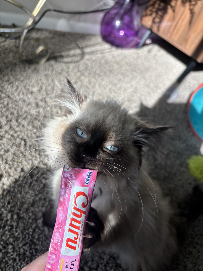 Learn MoreMochi loves her llama toys, mama llama is actually a dog squeaky toy and baby llama is a cat toy with a bell inside. She loves to fetch, and she'll carry the toys in her mouth, which is adorable because she's so tiny. Her favorite treat is a churu stick, especially the chicken flavor.