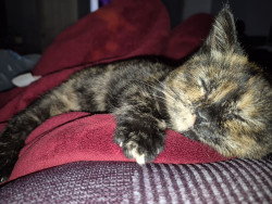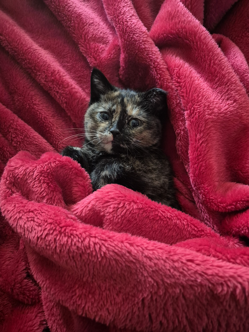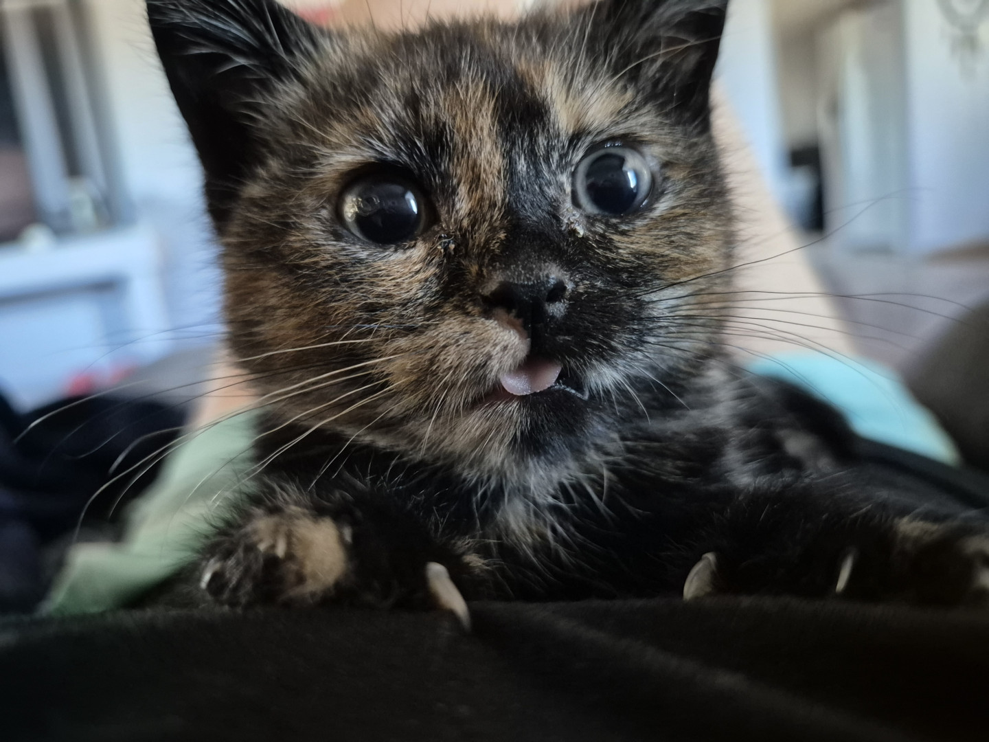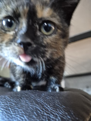 Mochie is a baby dwarf kitten. She's a miniature gremlin and full of spunk!