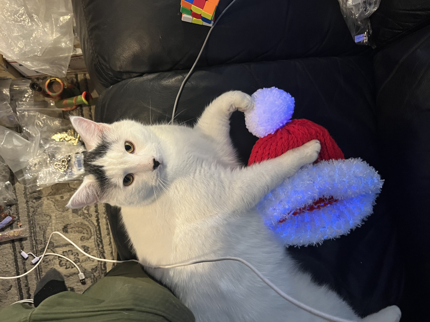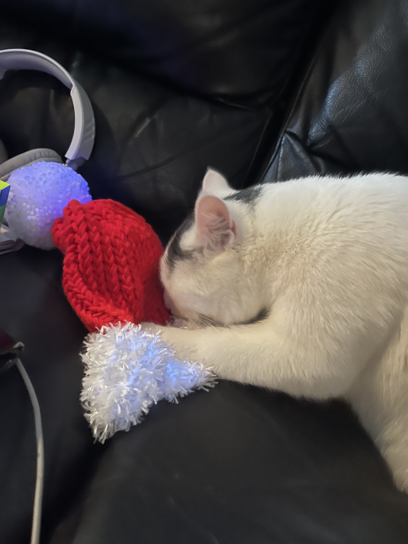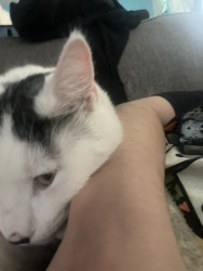 He loves my pillow and my lap and he loves to play with his sister meeka