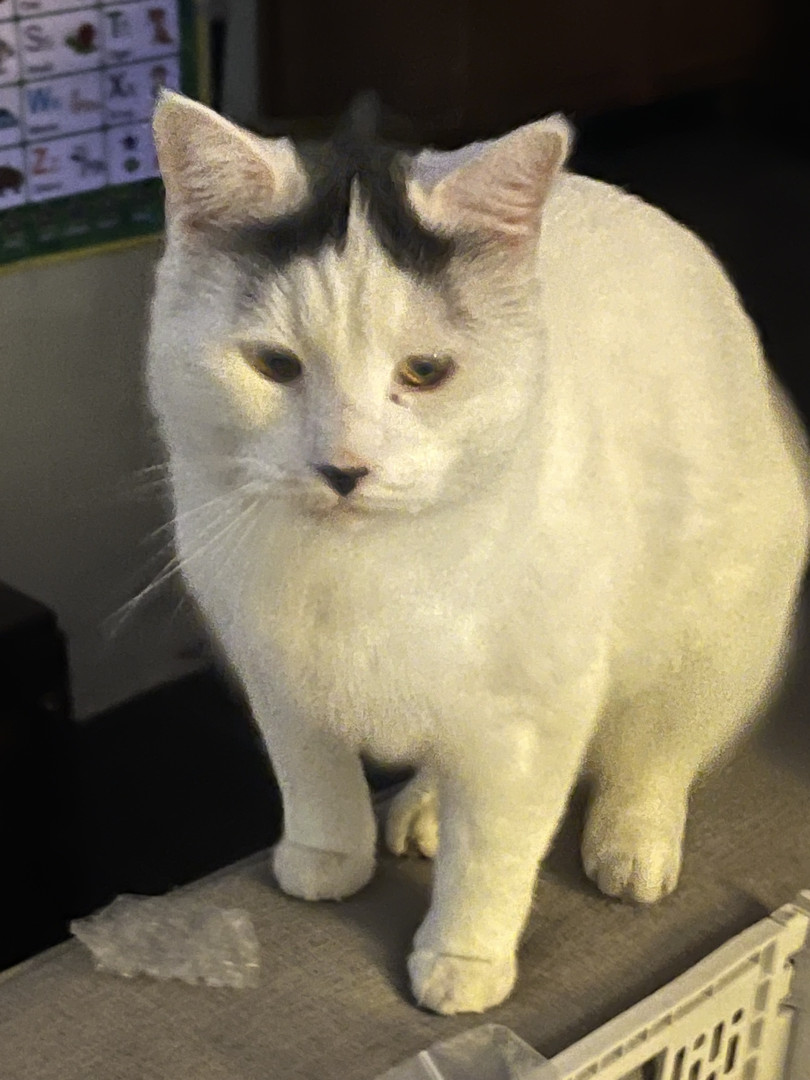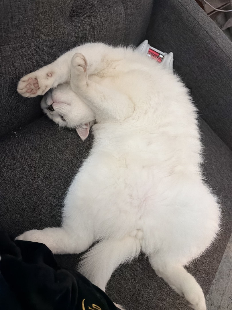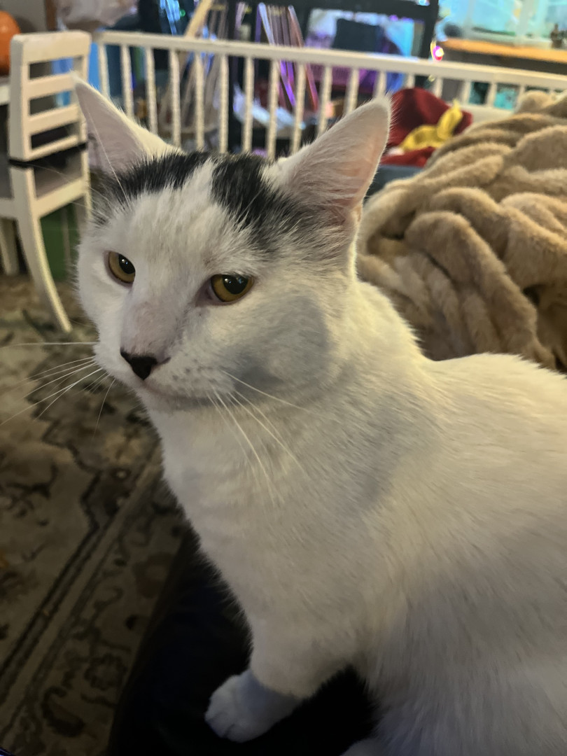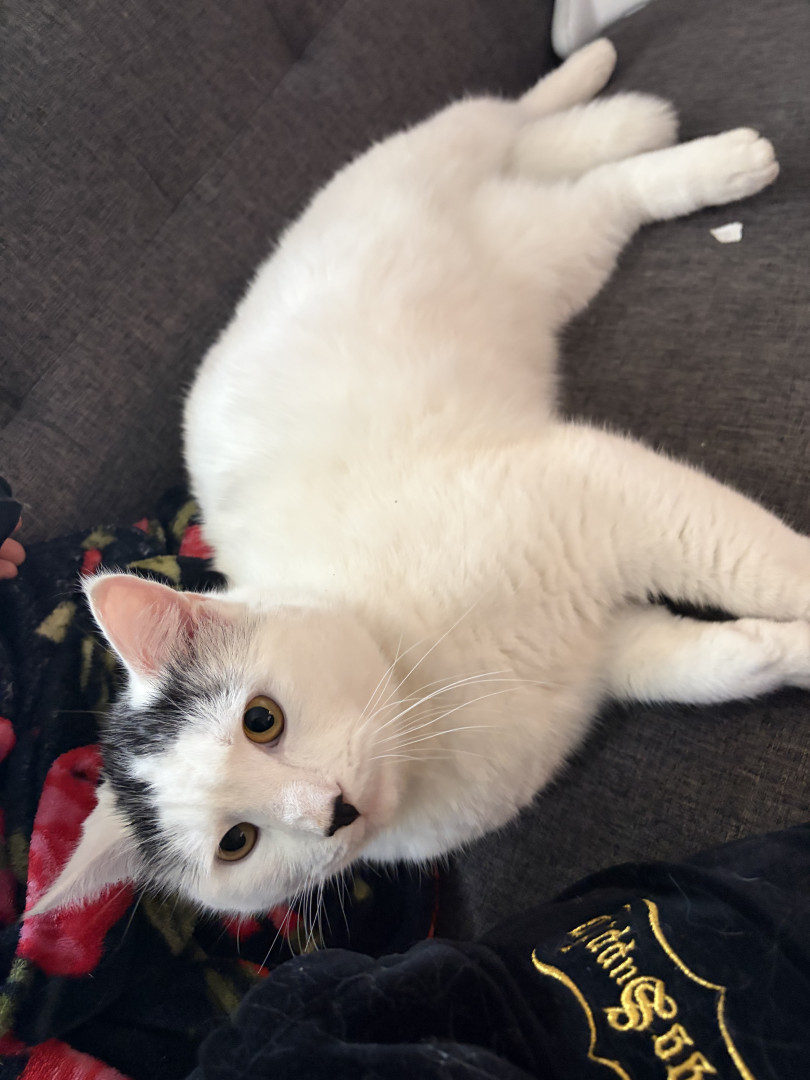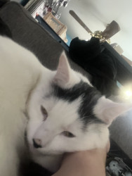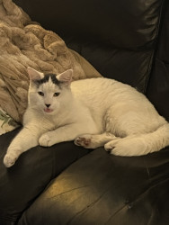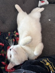 Moe is by far the friendliest cat I’ve ever met in 36 years he treats everyone like he protects them he’s very cuddly and loves to protect his home and family