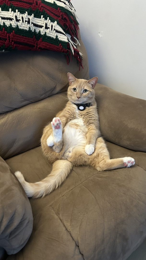 He’s such a goof! He loves to walk into a room, do a big jump, and then walk off like nothing ever happened. He also is a big fan of going into another room and howl like he’s been abandoned, while his loving family is maybe 5 feet away from him. He truly is such a goofball, we love it!