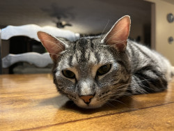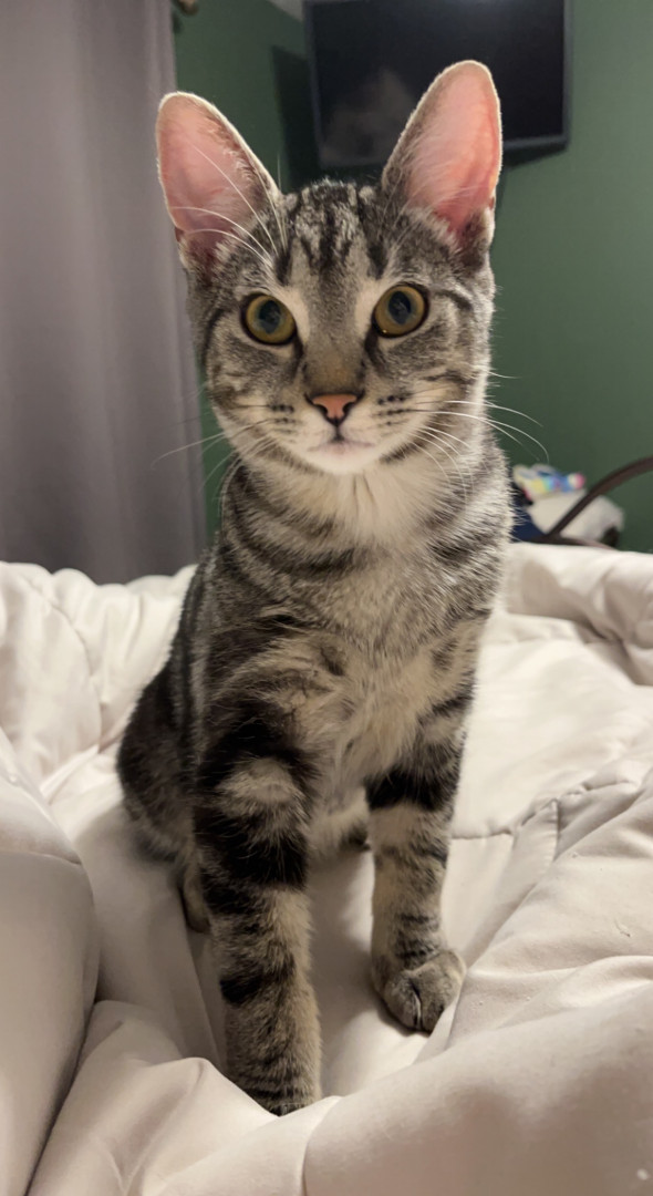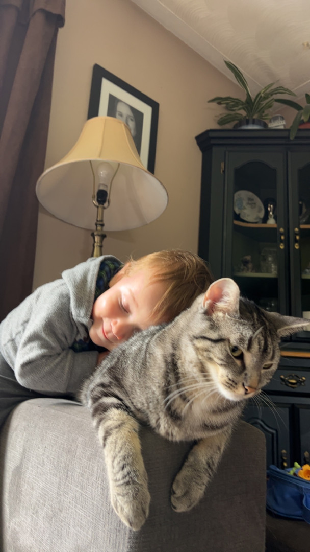 Moe is playful , affectionate and Demands attention , he is the cuddliest cat I have ever had. Crawls under blankets between me and hubby