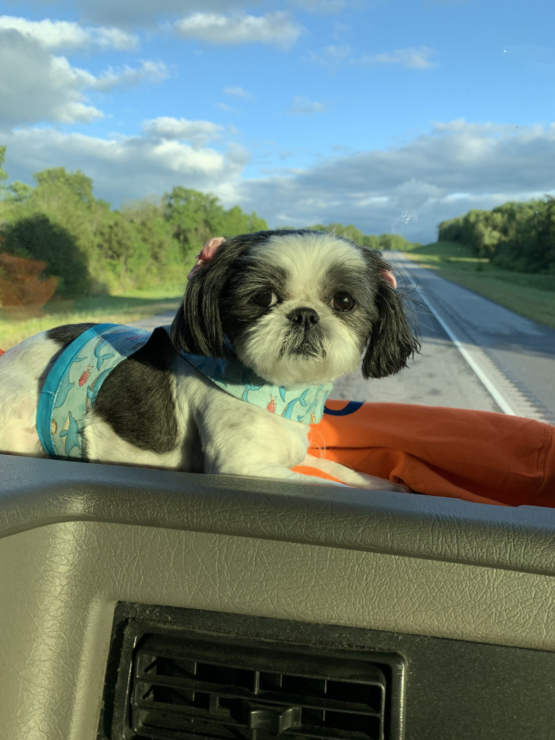 Mollie is so loving. She loves her home, blankets and her mama and diddy. I could not have children but she is totally my baby girl. Mollie loves to ride and visit every drive up window place in our small town to see her hooman friends and get treats!