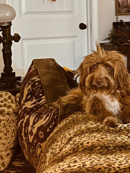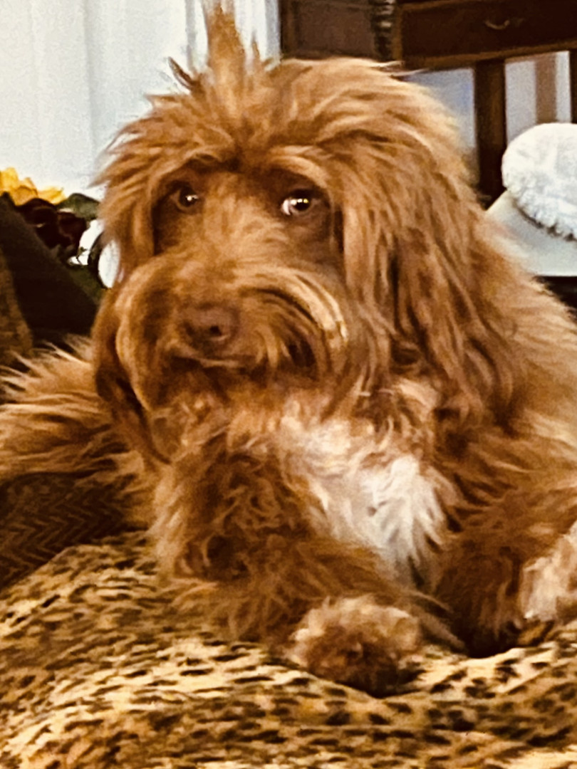 Mollie is just 1 yr old on 10/31/25 and she is a mini Golden doodle .she is so sweet.she knows a few tricks and will dance for treats.🐾🩷🐾