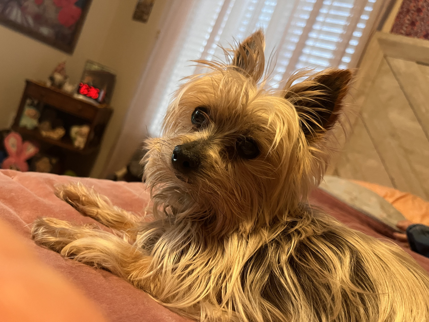 Molly is a 4lb yorkie, she’s 13 yrs old she still loves running around the house. She’s beautiful.she have two little bears