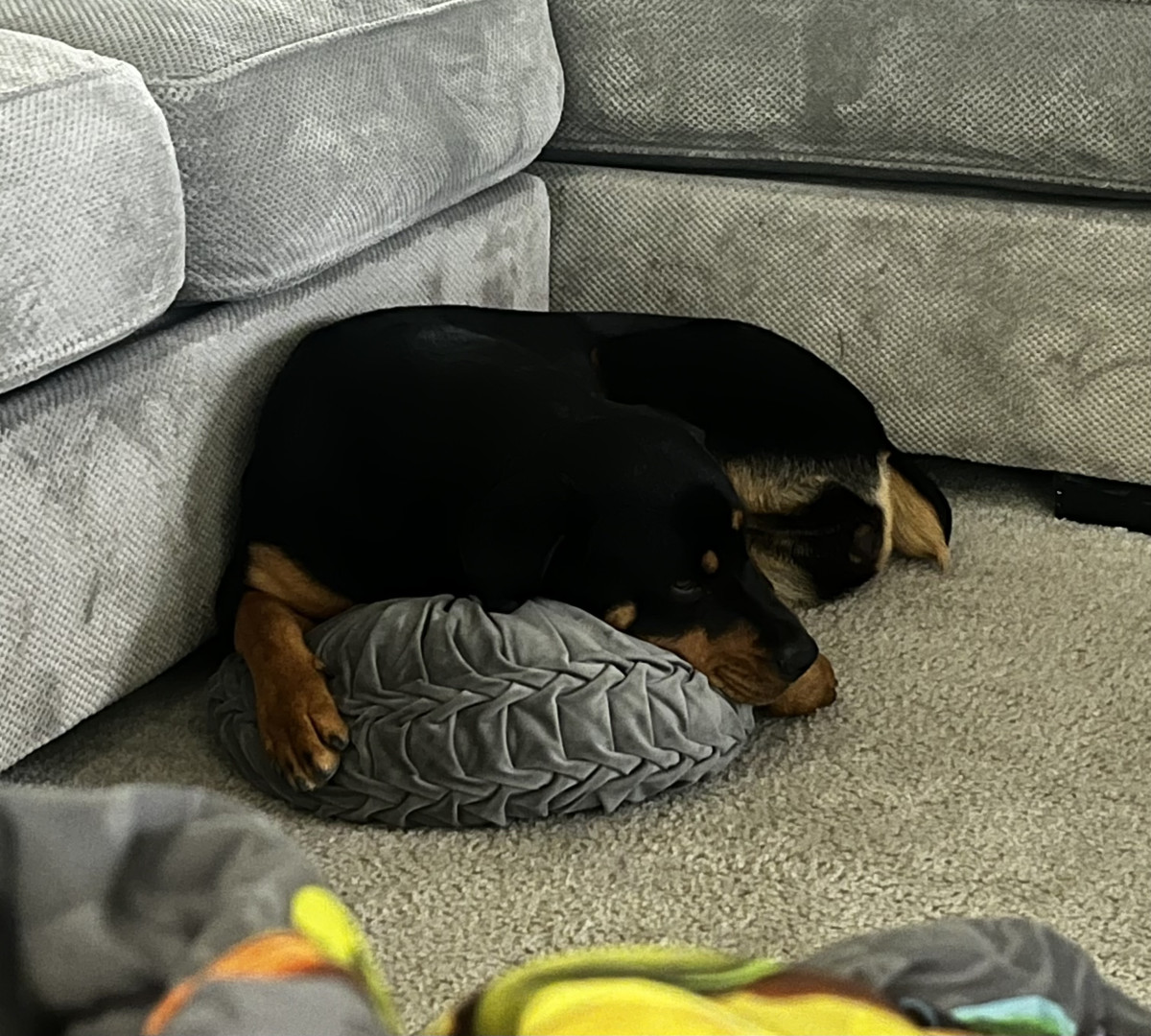 Molly is a fun loving playful dog who loves pillows and loves to snuggle.