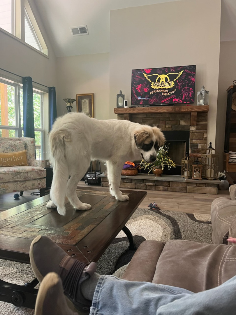 Molly is a big ball of fur with a heart of gold; Our gentle giant. She is a Great Pyrenees / Anatolian Sheppard mix, 12 months old.