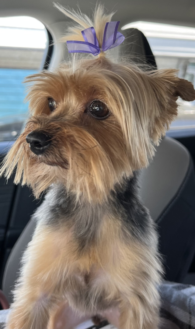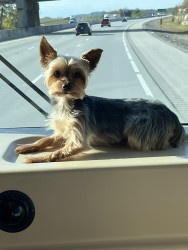 She can balance herself very. She does not like to be left at home. She thinks she has to go everywhere.
