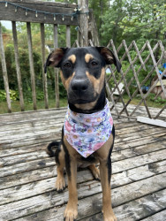 Molly is a spunky, busy and super affectionate pup who loves the outdoors, watching tv with the family and going in Sunday drives.