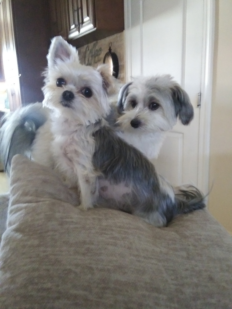 Molly and little Macy are Morkies. They are smart, playful and sooo cute especially together. Sweetest personalities! Both are under 2 yrs