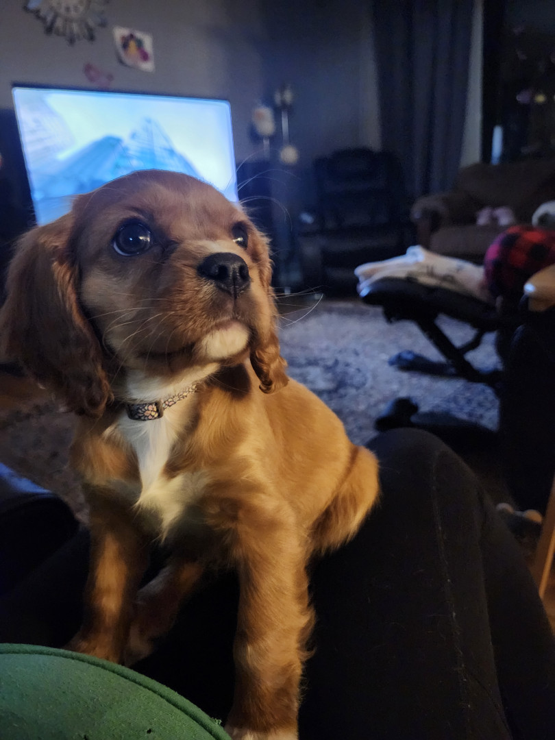 Molly is a King Charles Cavalier, she is loveable, sweet, playful and loves to cuddle.
