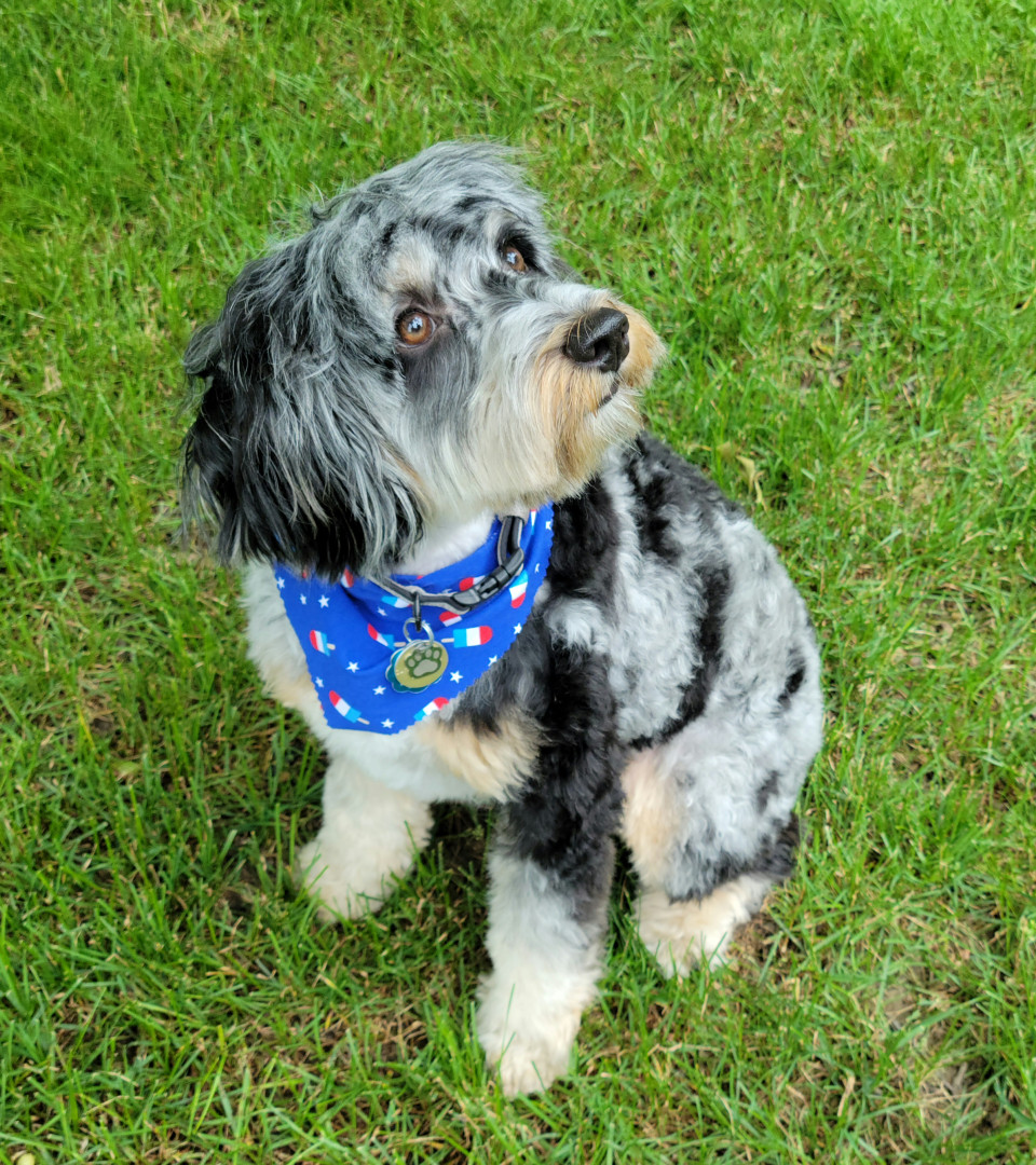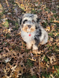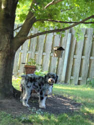 Molly is a mini Aussie Doodle 4 yrs old. Blue merle color.