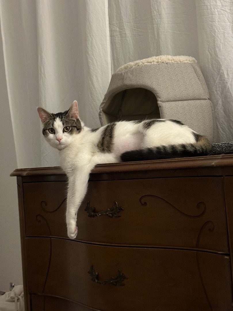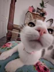 Molly is the perfect sweetheart kitty with lots of spunk, lots of love, and a hilarious personality that warms the hearts of all those she encounters. Molly never fails to put a smile on your face, and in the night she will always cuddle up right by your head. She wants nothing more than to love and be loved, and her adorable face says it all!