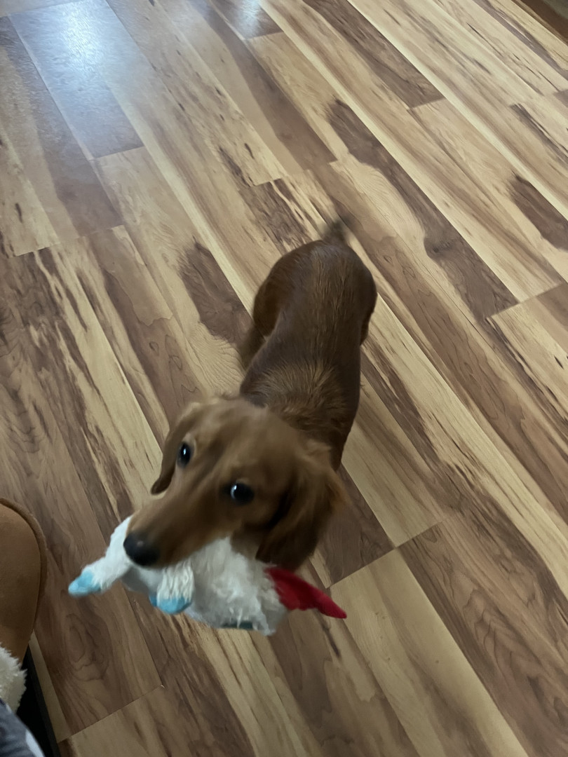 Molly is a 10 month old Miniature longhair dachshund. She is the typical dachshund smart loving and a bundle of energy that loves her baby