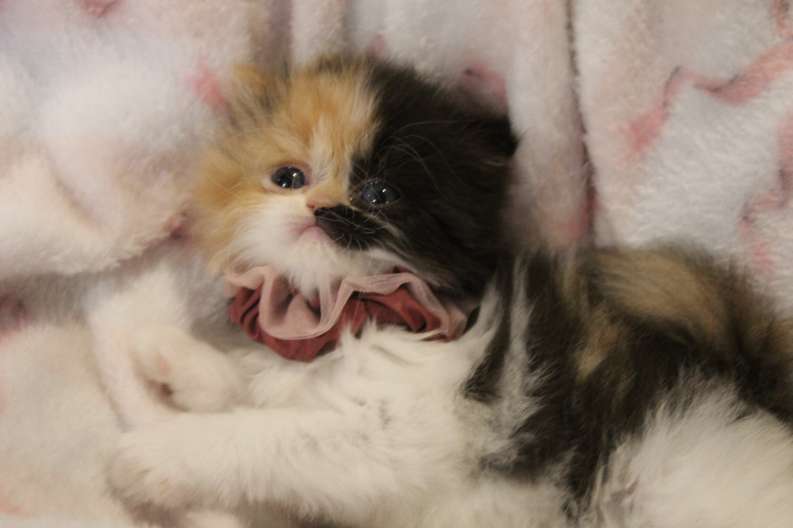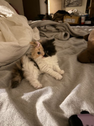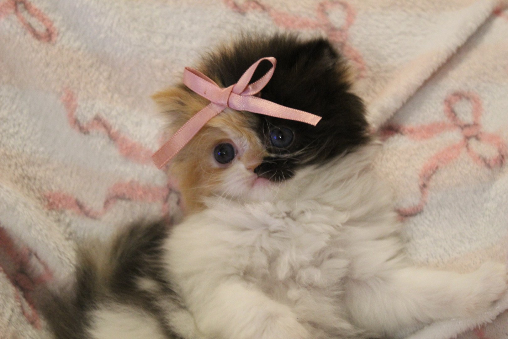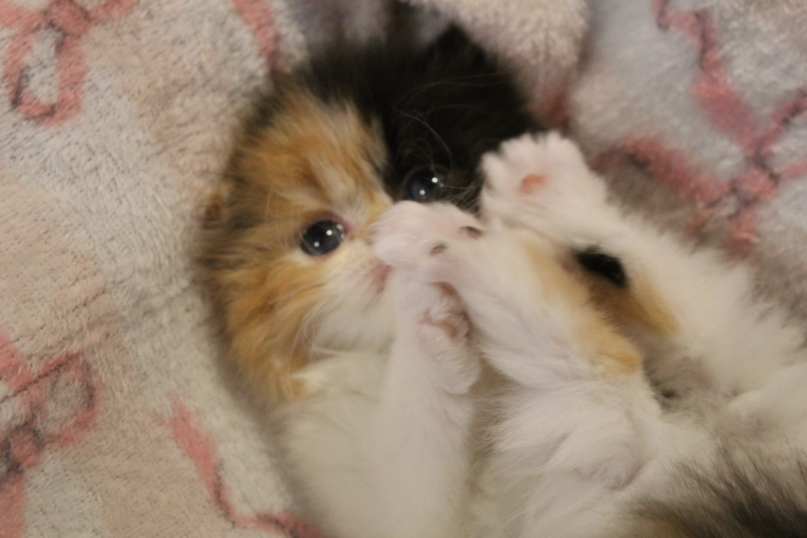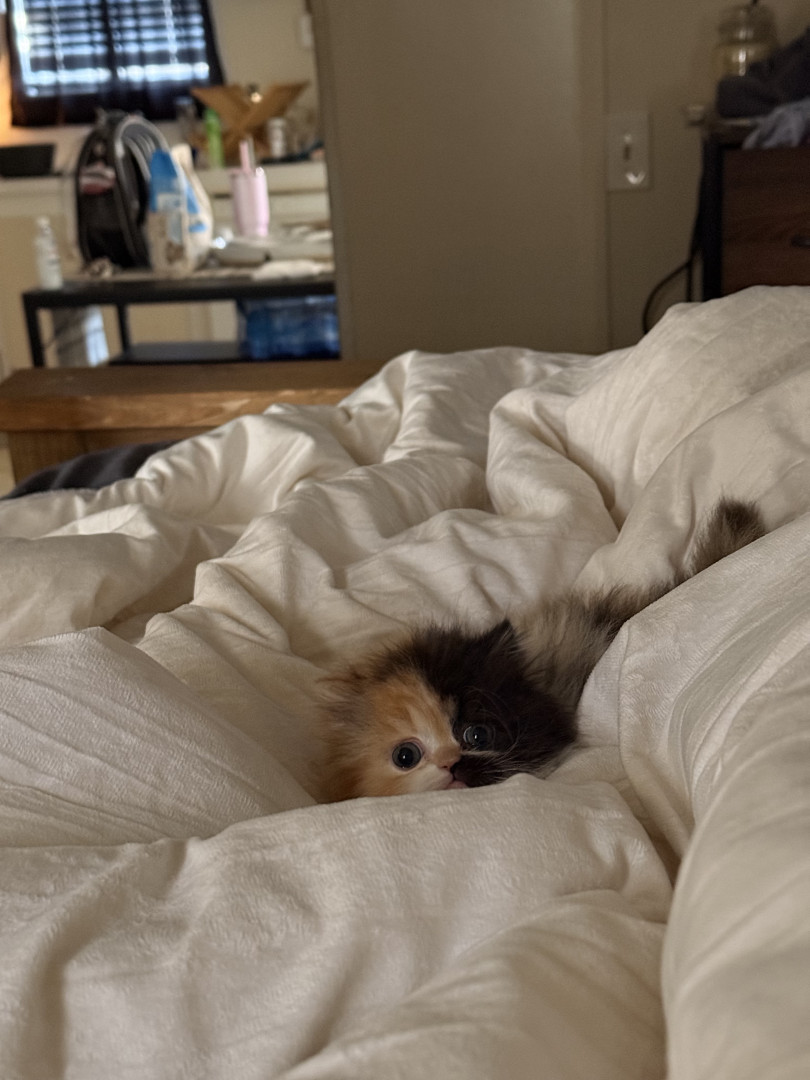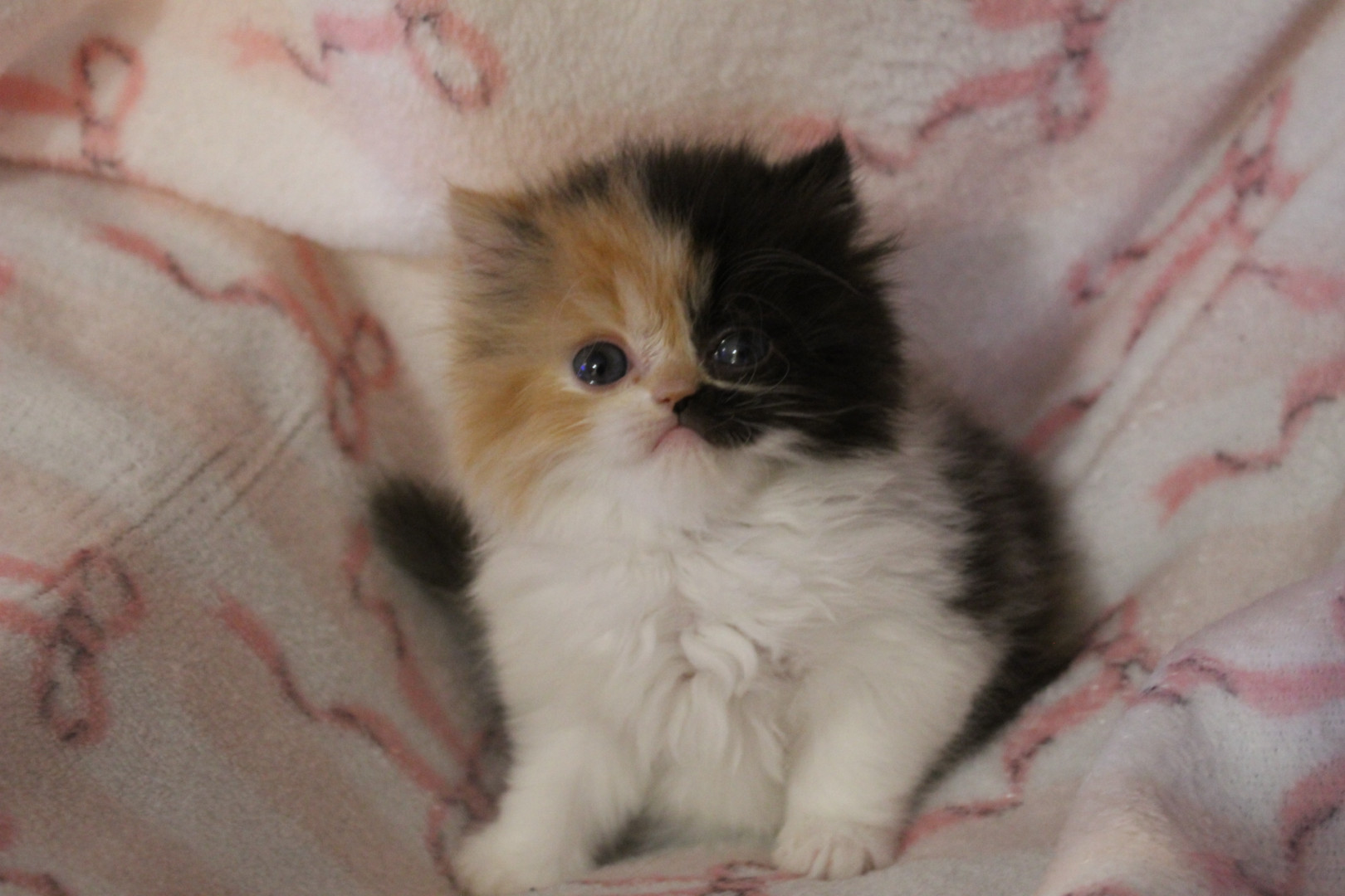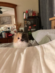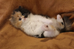 She is a Persian calico ball of fluff, she is only 8 weeks old but is very smart and playful