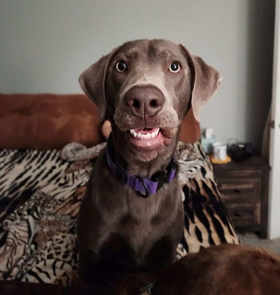 Sweet 2-yr-old silver Lab ๐ Wiggle-butt queen who spins, gives face kisses, and loves big — gentle soul with a loyal, protective heart ๐พ