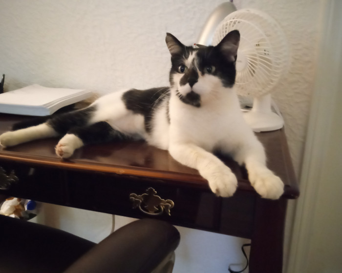 MooMoo is a beautiful little "cow" cat and she's 2 years old. I love her with all my heart. She loves soft toy mice and tuna fla