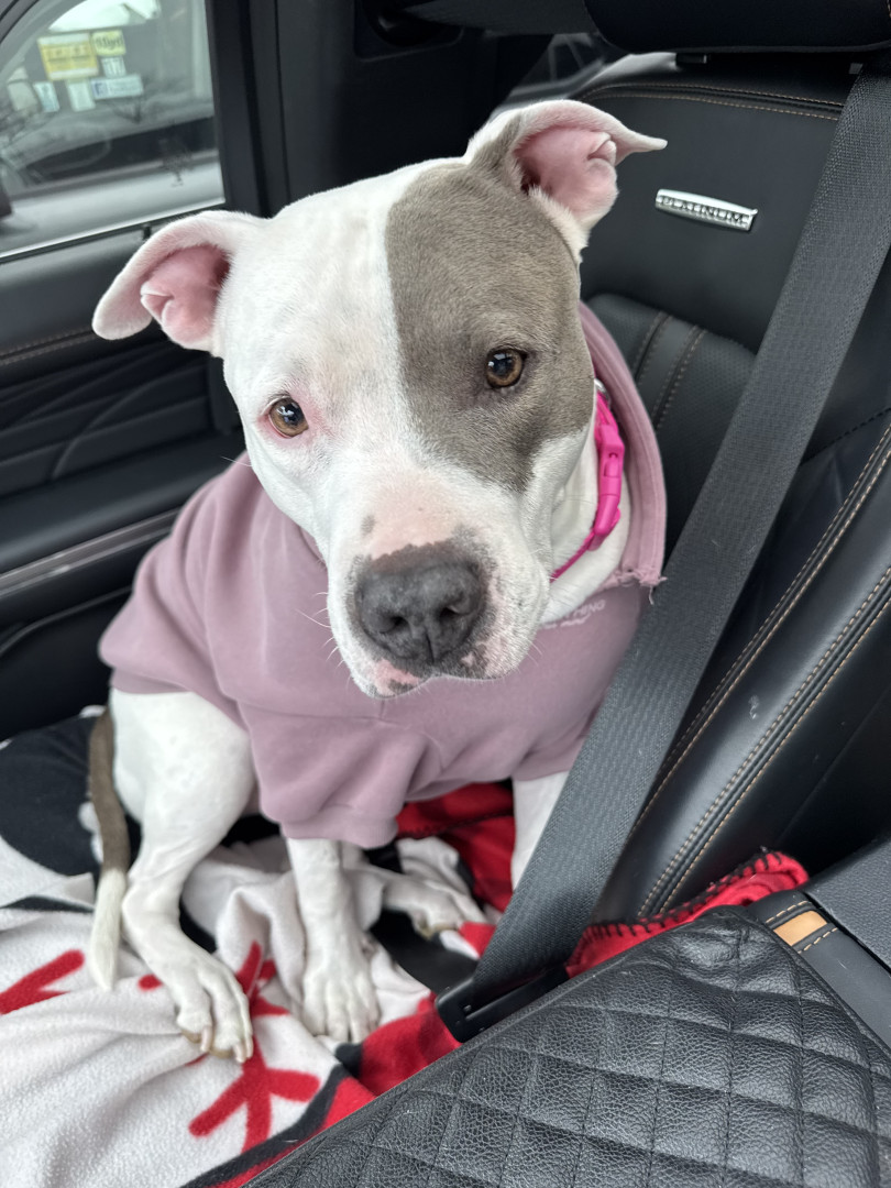 Moonpie is our special little foster fail. She was found abandoned in downtown Cincinnati during Covid. She was chipped & trained, but she was no longer wanted. She hated the shelter. She cried all day & all night, so they moved her to the front office where she snuggled with staff all day. We agreed to foster her over a holiday & she immediately fell in love with our 2 doodles. 7 days later we made her ours forever because she is the sweetest & most loving, emotional angel we have ever seen.