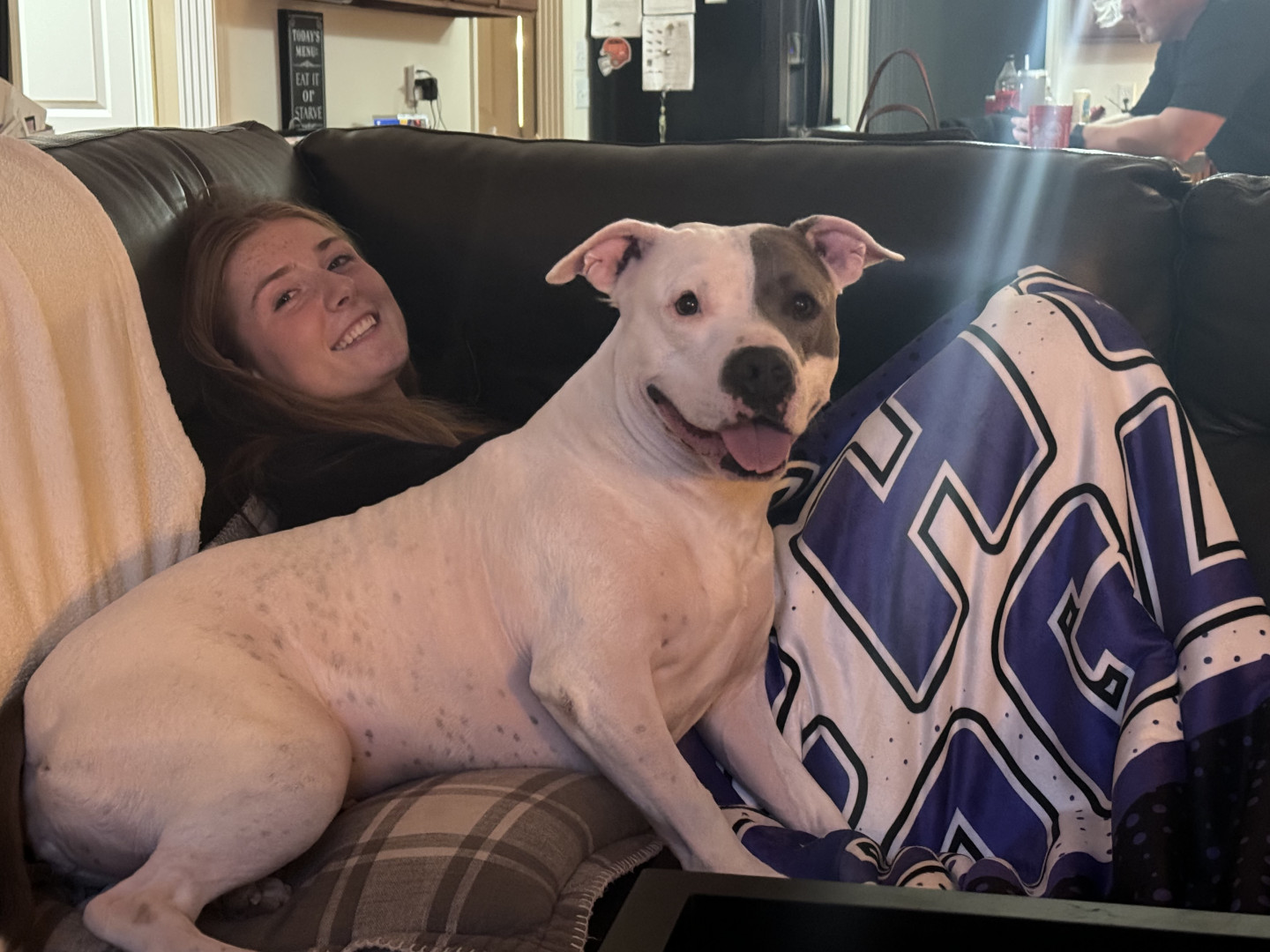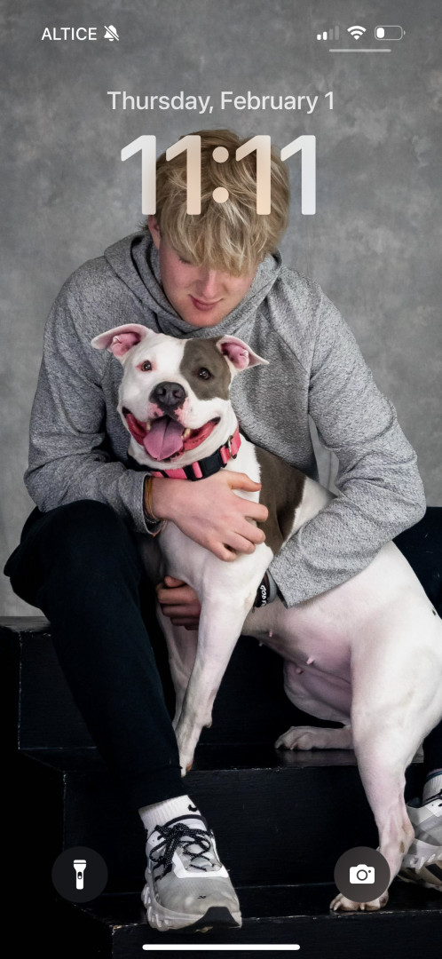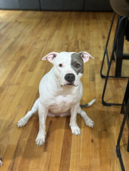 Moonpie is the sweetest and snuggly sleepy little staffy you could ever find. She will play if you really want to, and loves a brisk walk.