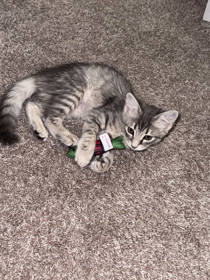Her favorite toy is a stuffed squirrel that she brings everywhere. She absolutely loves tuna as a treat!