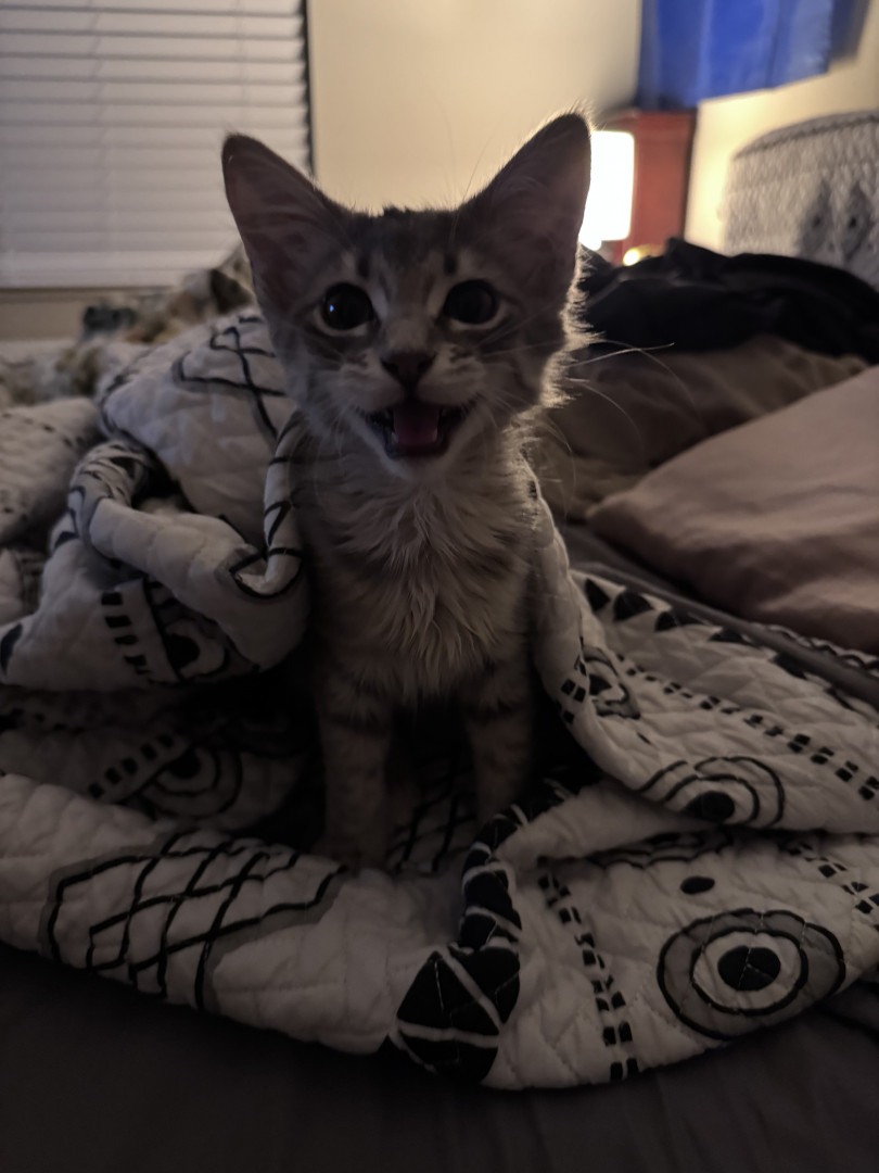 Moony is a very playful, loving 5 month old kitten that loves to talk and cuddle!