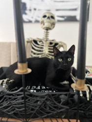 Moose is a short hair domestic angel who loves halloween & hunting lizards. He weighs 14 lbs and is such a handsome guy!!