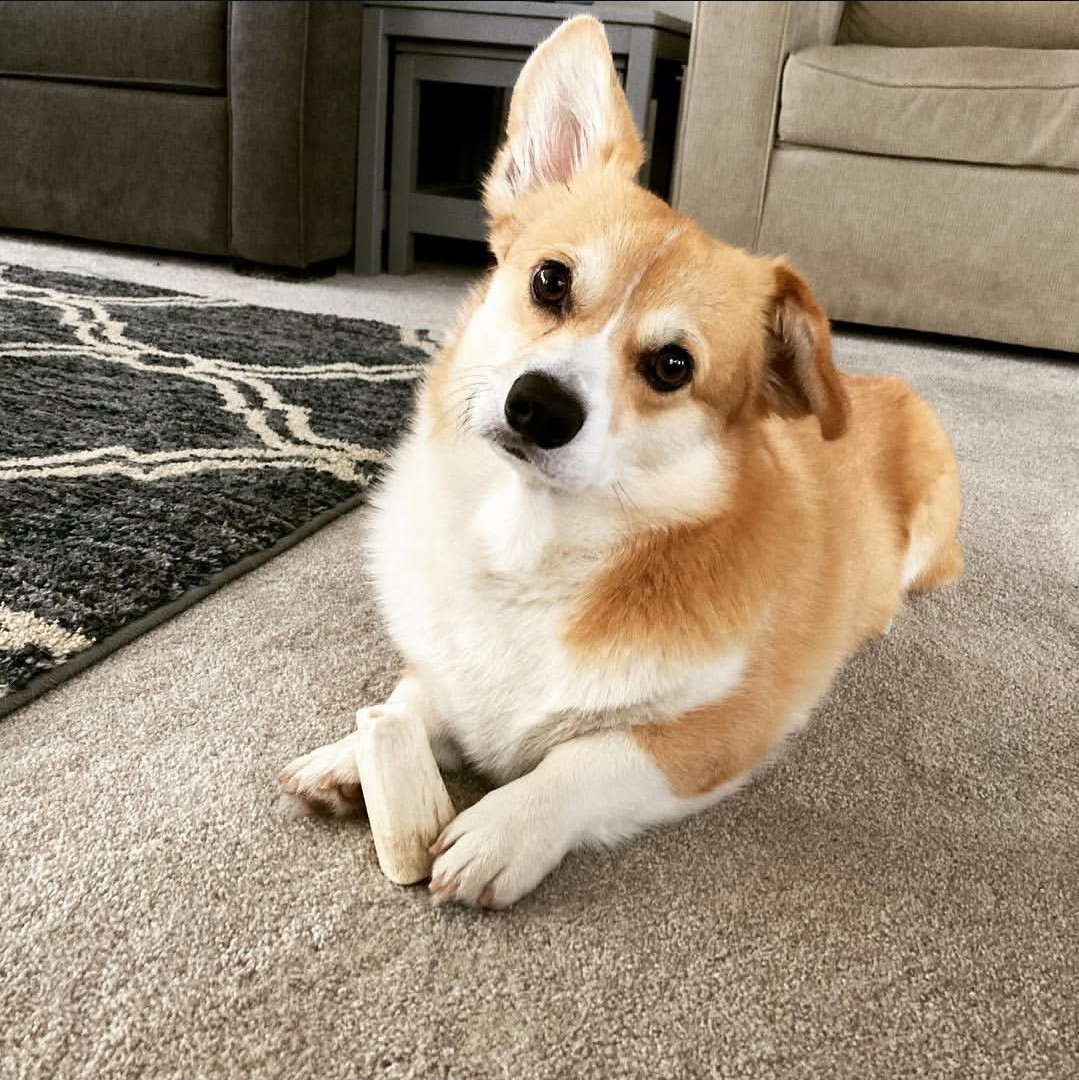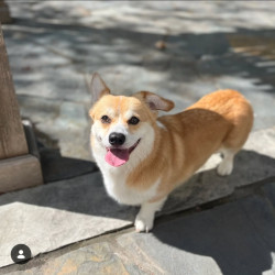 Moose is a sweet, gentle corgi who loves pets, lives for treats and cookies, and enjoys relaxed, short walks with his humans.