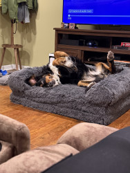 Learn MoreMoose loves his stuffed pumpkin toy. His favorite treats are Dentastix and freeze dried salmon bits.