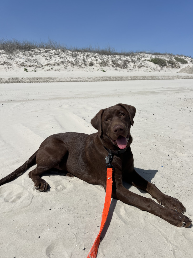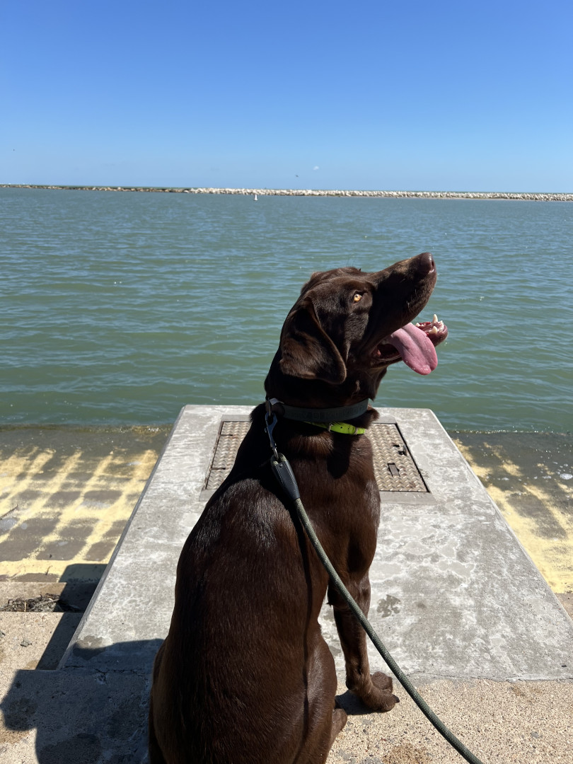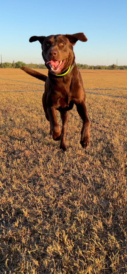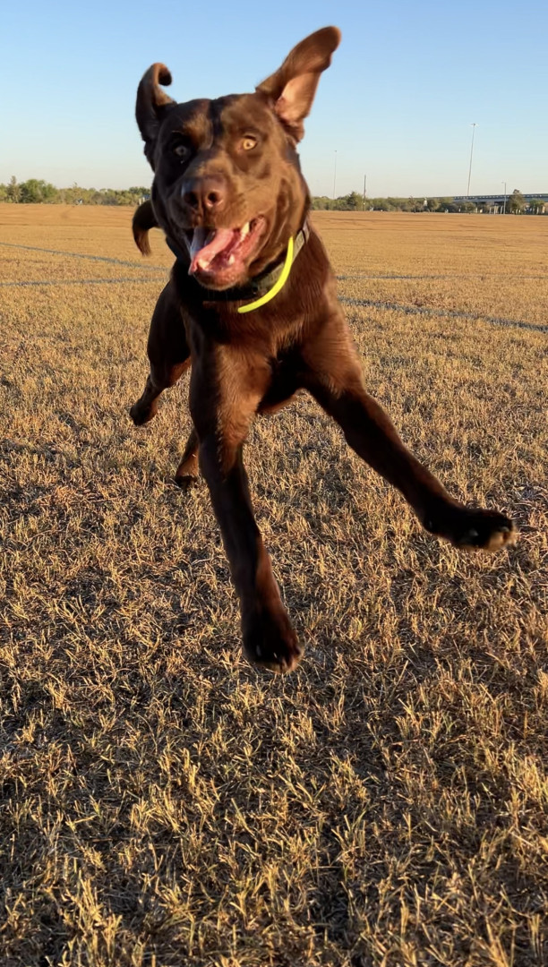 Moose is an energetic, outdoor-loving chocolate lab. He loves running around the park, going for boat rides, and just being crazy in general