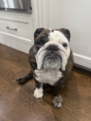 Moose is loving, adorable, and fun! She is the sweetest bulldog ever!