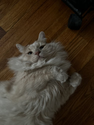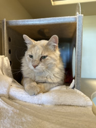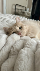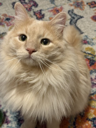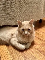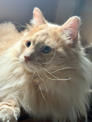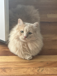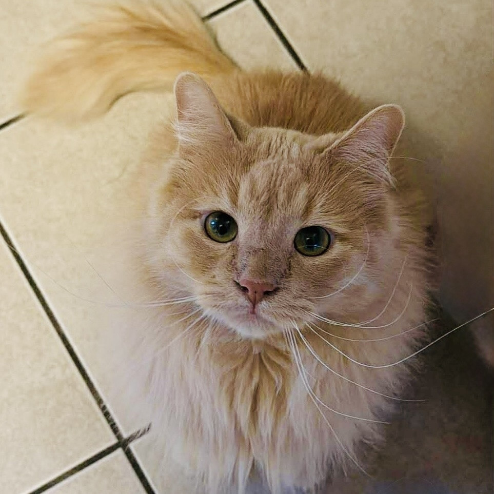 Once a stray, rescued, now adored—Moose is a fluffy orange kitty with a loving heart and irresistible charm.