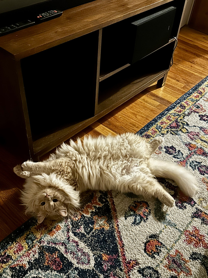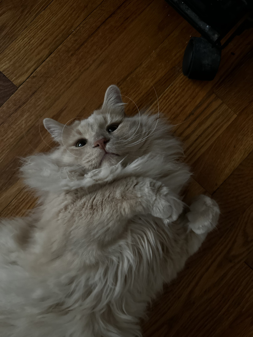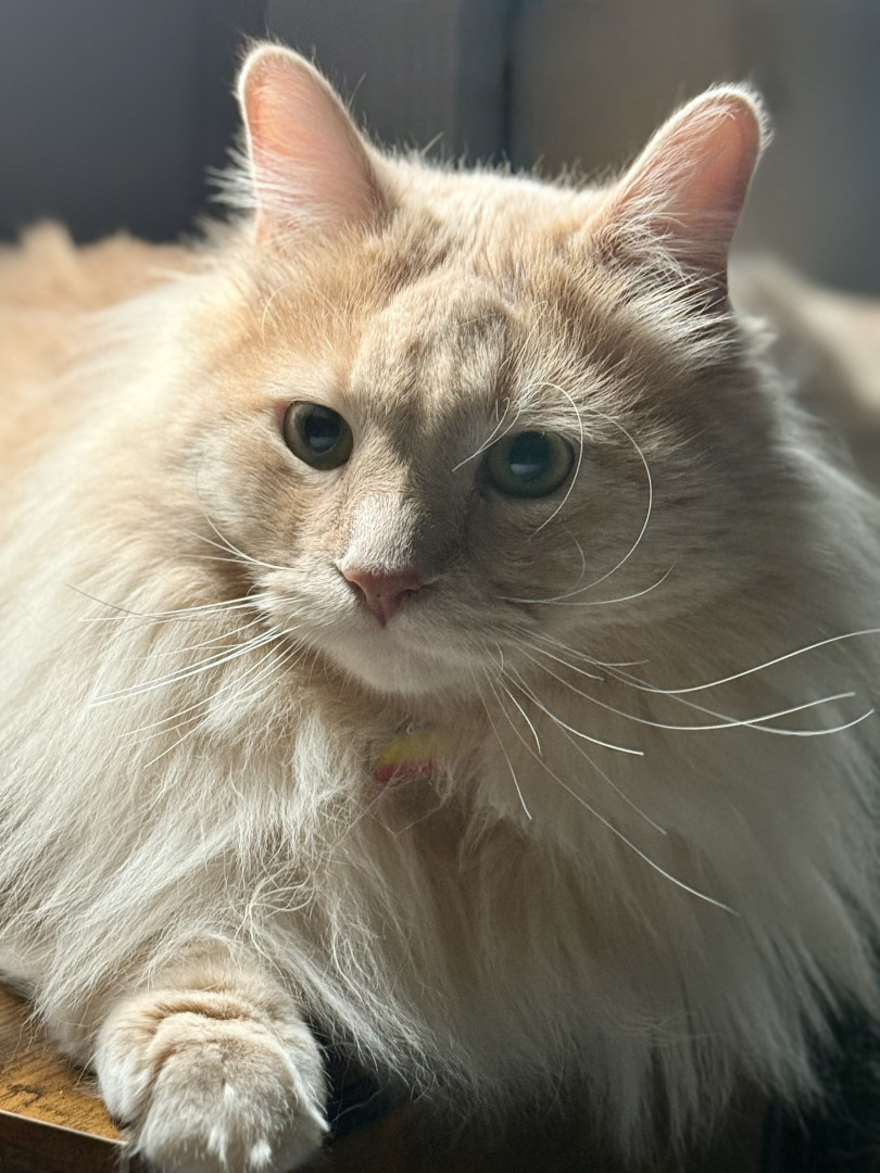 Moose was a stray that I rescued in 2024. He’s approximately 4 years old. He survived a life-threatening illness last month, but came back stronger, sweeter, and full of love. He represents resilience, hope, and second chances.