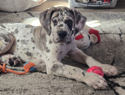 Moose is the sweetest boy ever! Only 14 weeks old! Always being goofy sticking his tongue out! Very well mannered and beautiful!