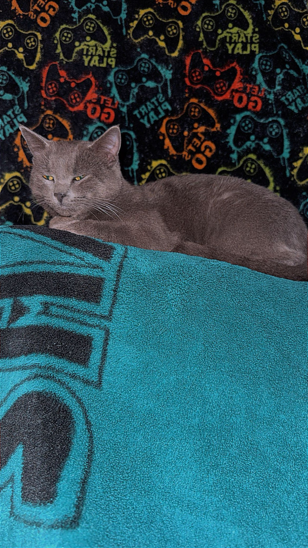 He is the most mellow and unctuous kitty around. He can be so cuddly and playful and calm. He loves to take baths and sit on your neck