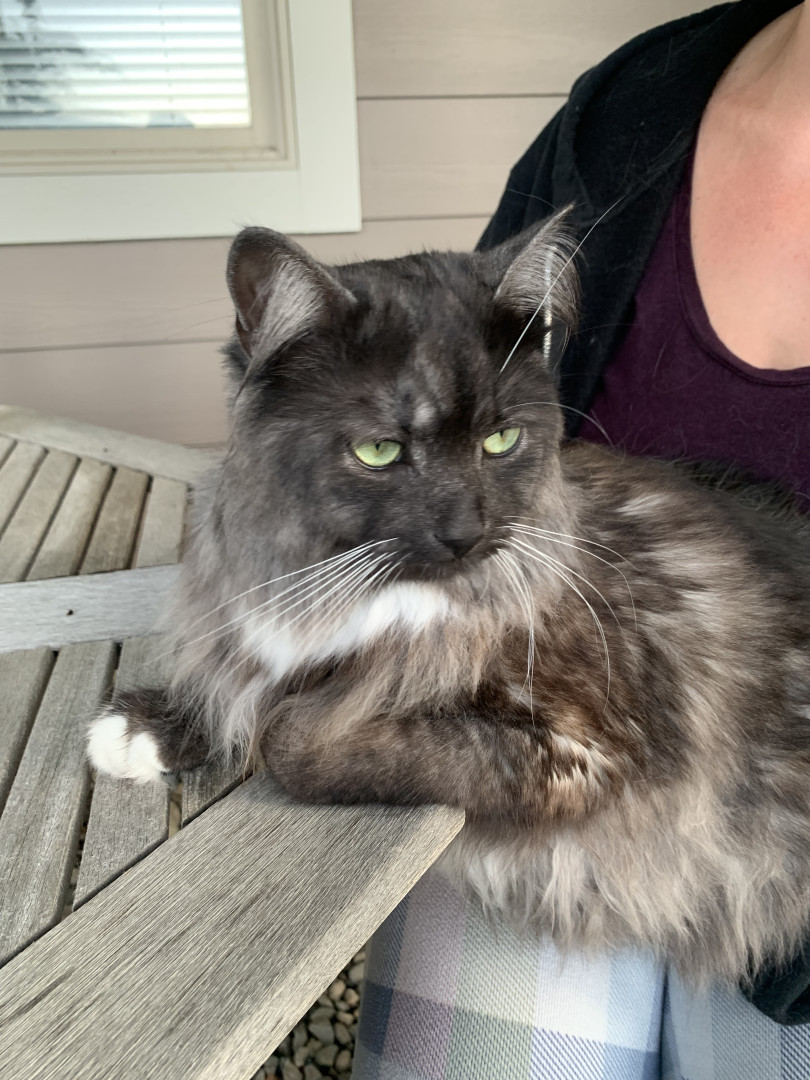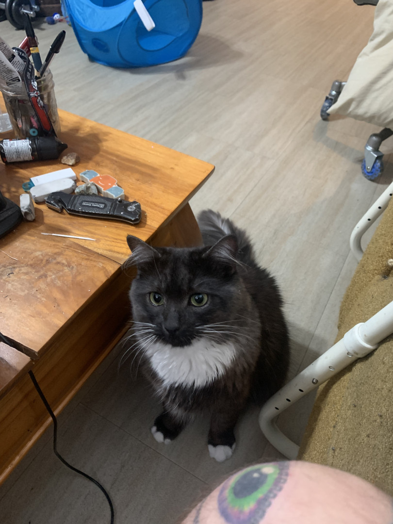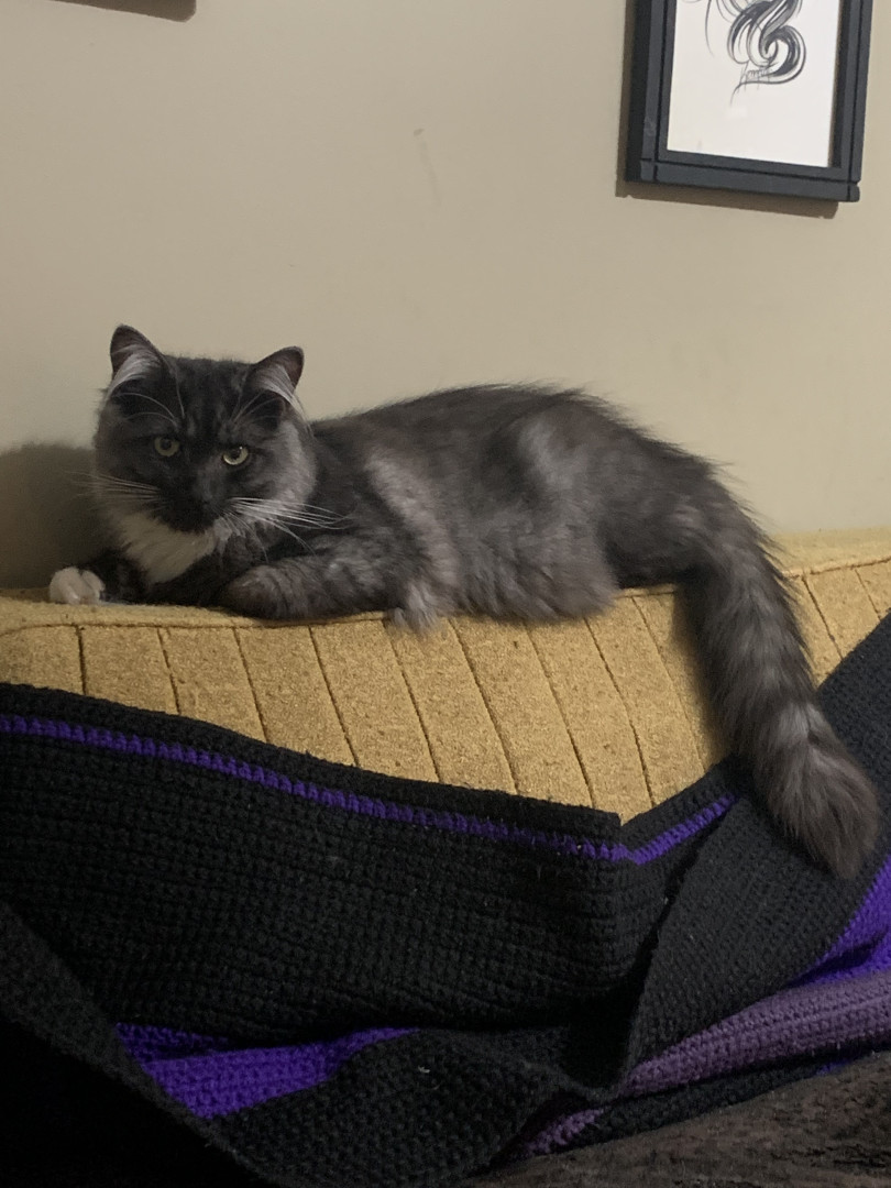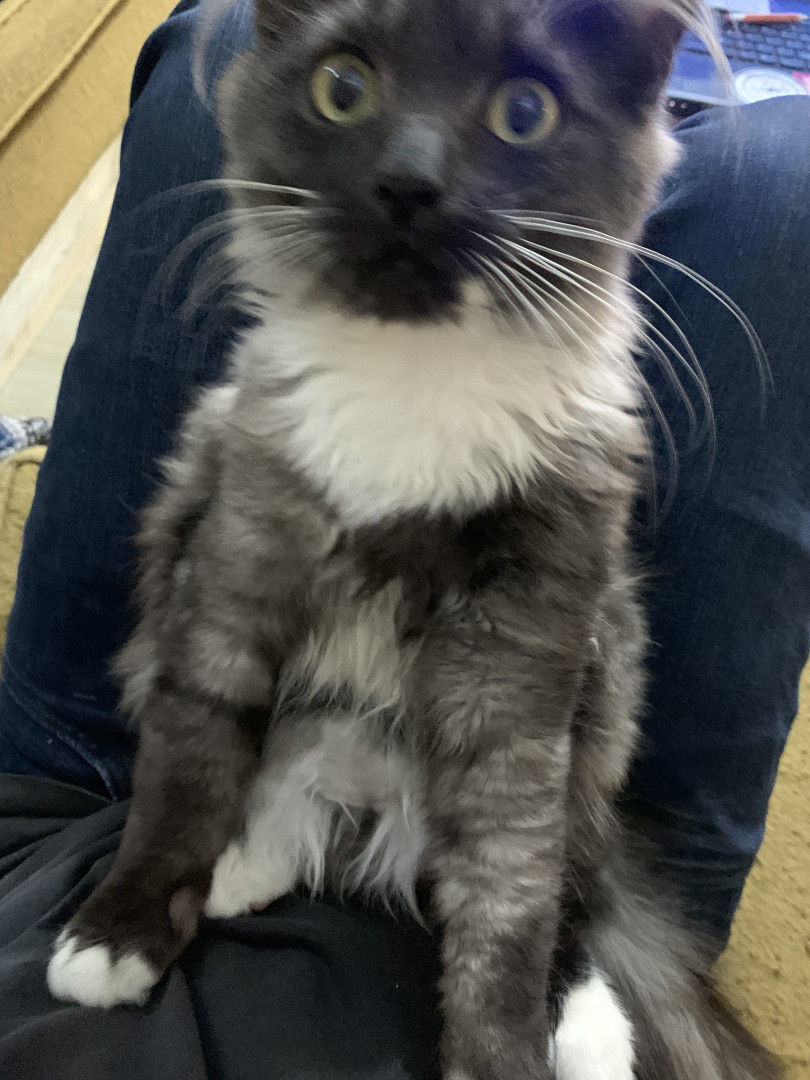 Hes a quirky, sassy little wierdo. Absolutely loves to cuddle and socialize! Hes a ragdoll mix but hes a big fluffy suck