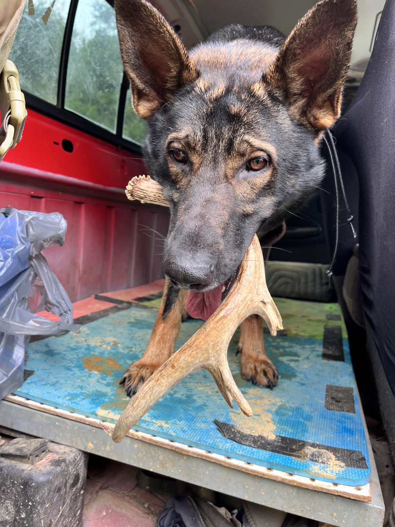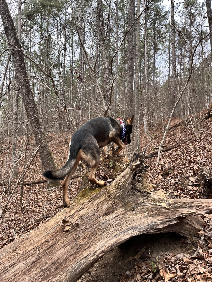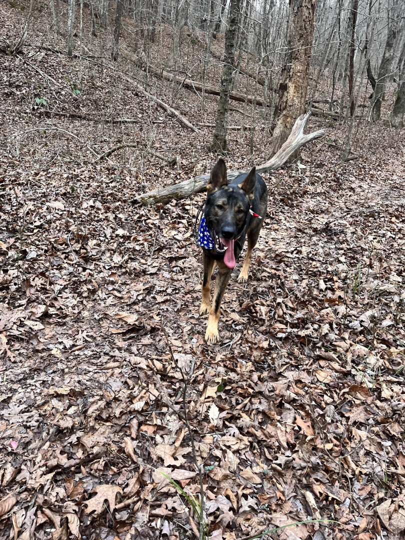 He’s just always happy. He seems to be having the best time of his life anytime we’re out. He is very loyal never goes far when we’re out in the woods and he always checks in with you. he has a very uplifting soul and is one of my top favorite dogs to hang out with.