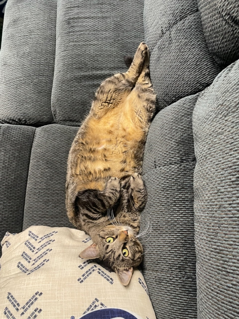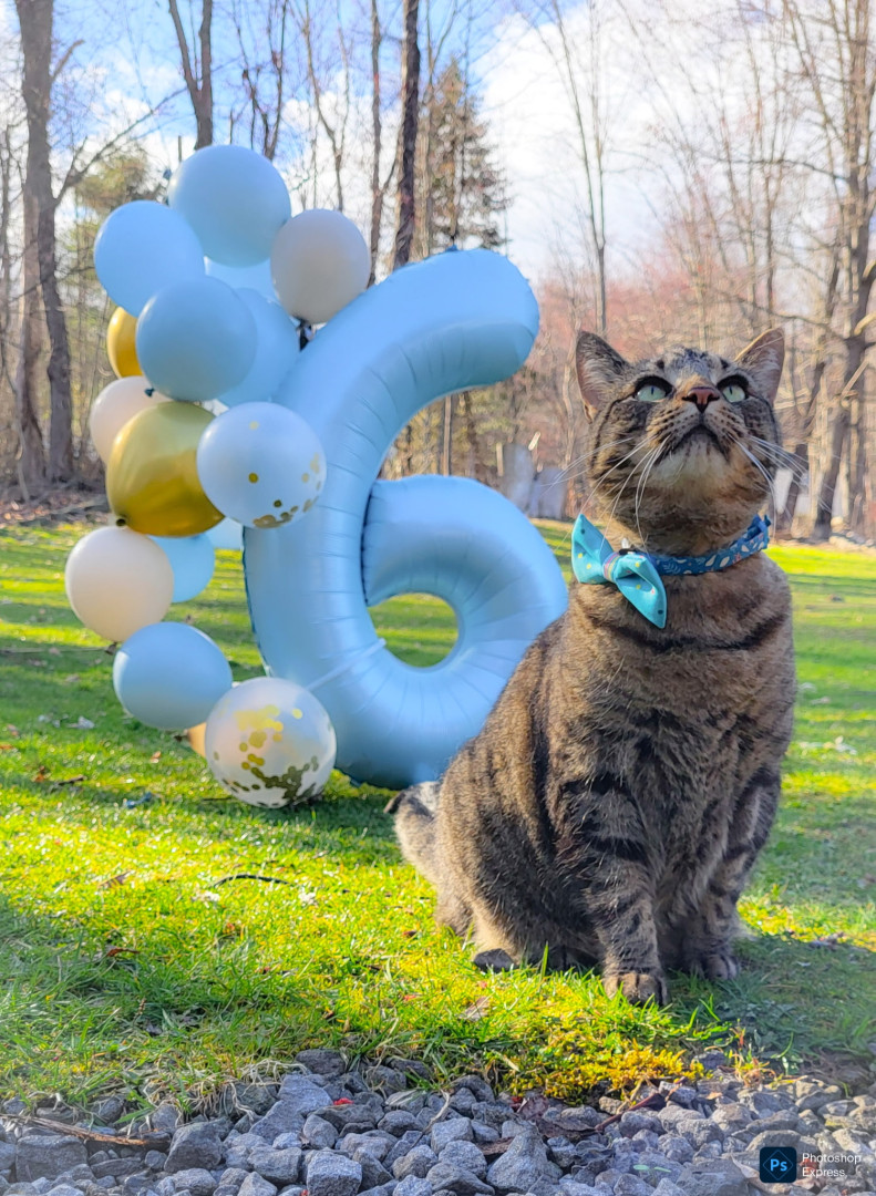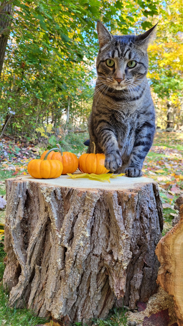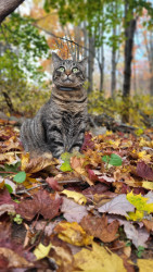 Mowgli enjoys long walks to the food dish and watching birds out the windows. He also knows a few tricks. He can high five and catch treats!