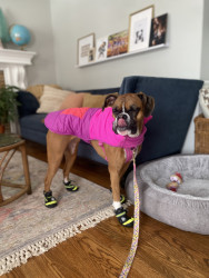 Moxley is the light of my life. I call her my “Dogter” (daughter). She is empathetic, goofy, demanding, joyful, and makes everyone smile.