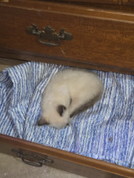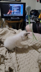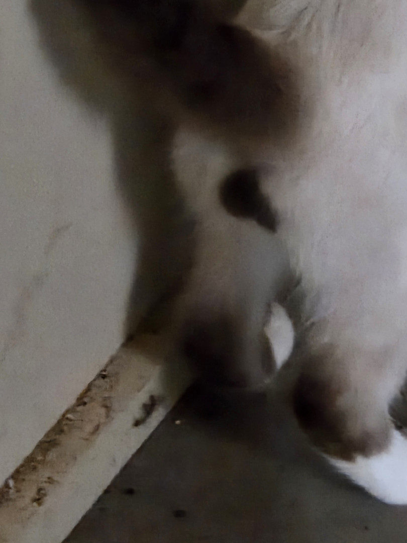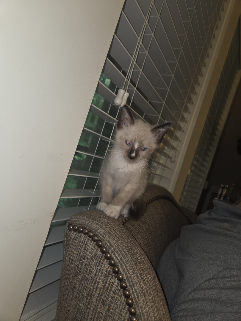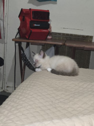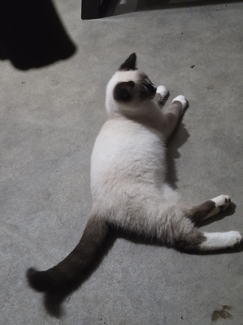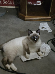 Dwarf siamese cat blue and red eyes upside down heart on his bottom (hahahaha)