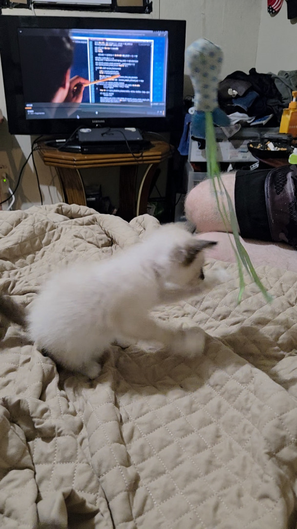 Mr blue loves to play with anything he can get his little paws on him