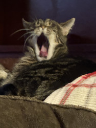 He is a cat. He has a snaggle tooth.
