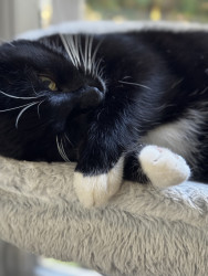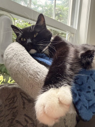 He’s the sweetest most loving lap cat ever. He might have stated his life on the street but has settled into the house cat life with ease, and there’s not one day where he doesn’t show us he’s grateful we saved him.