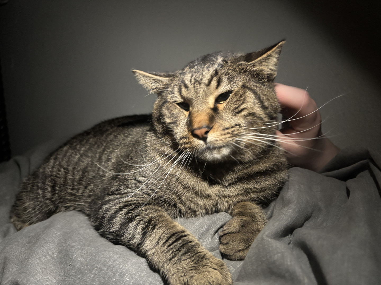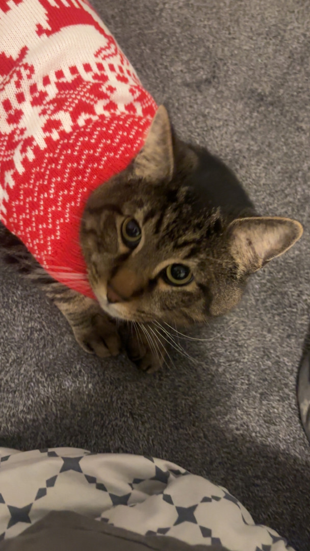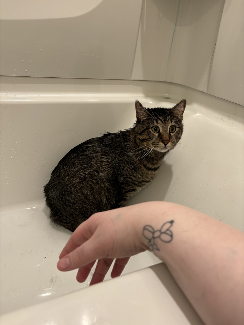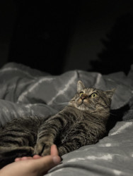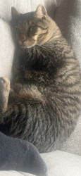 He is a little goofball who just sleeps and cuddles all day, though he’s super timid and shy.