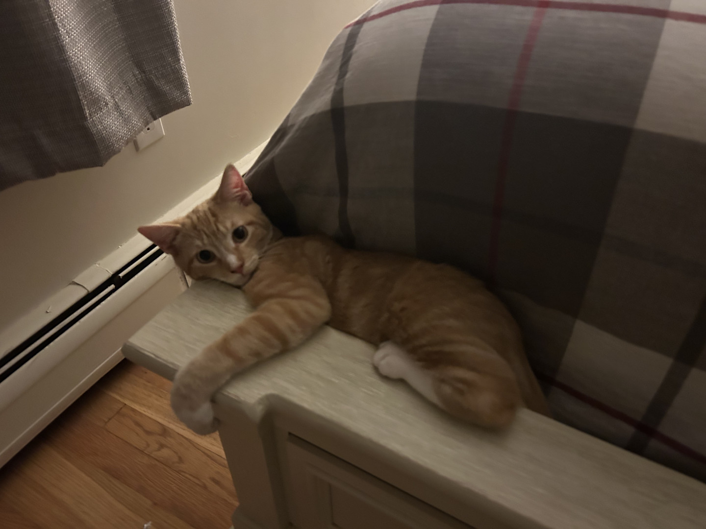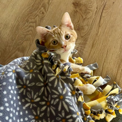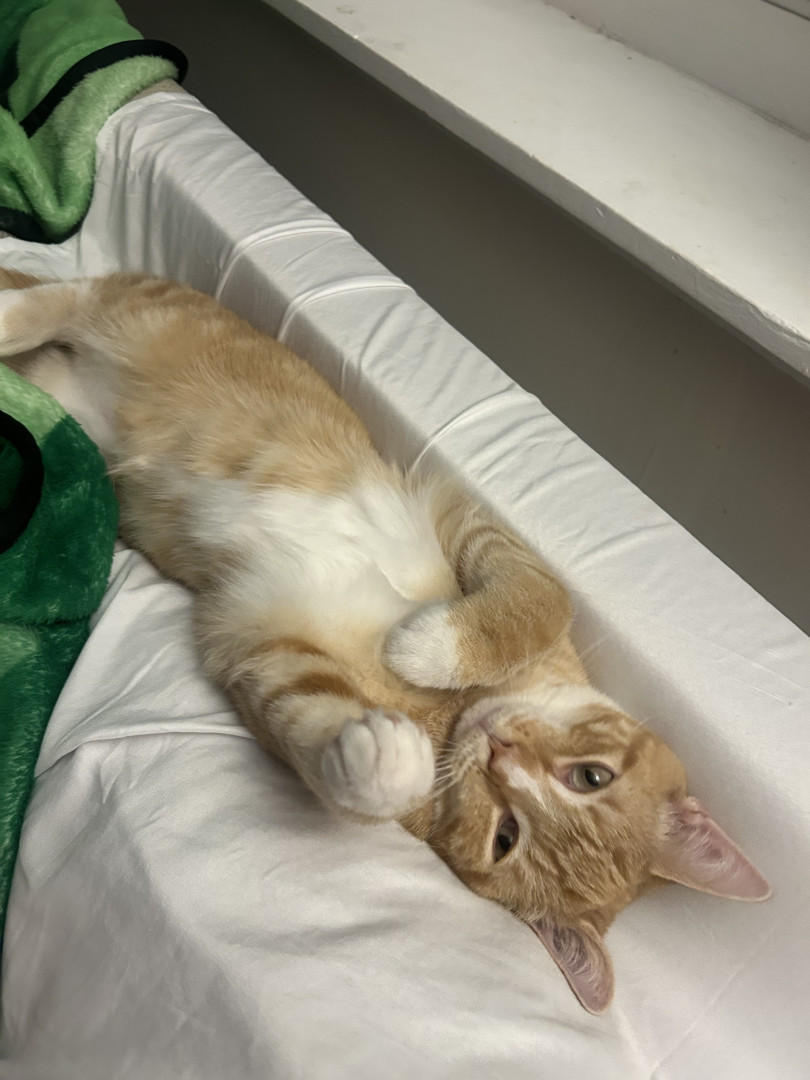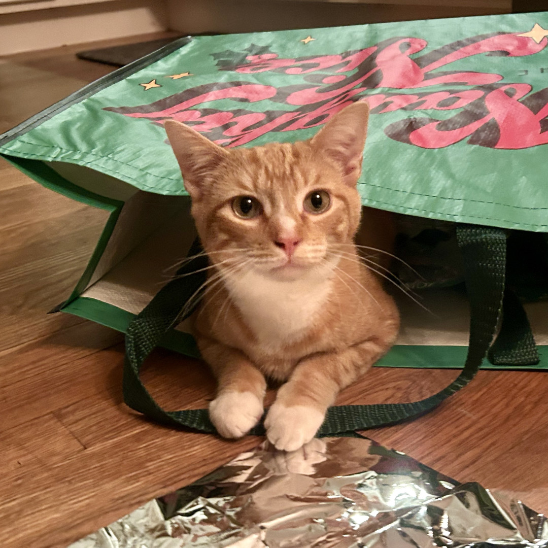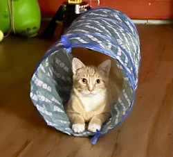 At just 8 months old, this kitten is curious, sweetly timid, and endlessly affectionate. Playtime brings out their goofy, zany